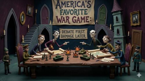 The funniest part is that everyone claims to be the cautious one. The hawks insist they are only preventing chaos. The doves insist they are only preventing catastrophe. Both groups agree on one thing: if this ends badly, the blame must be placed somewhere else, preferably on the next administration, the intelligence agencies, the media, or “the complexity of the region,” which is Washington’s favourite excuse because it sounds intelligent and absolves everyone.