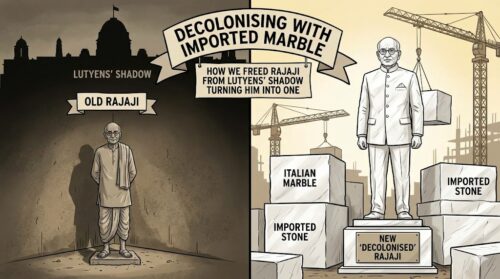 The bust of Rajagopalachari now looks silently at the empty spot where Lutyens once stood. The architecture remains, the architect vanishes, the dissenter becomes décor, and we congratulate ourselves for finally breaking the chains of gulami ki mansikta by rearranging the furniture in the colonial drawing room.