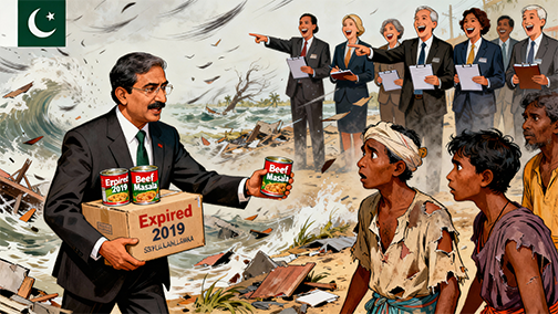 Clearly, Pakistan’s aid campaigns resemble a peculiar genre: a mix of reality comedy with a splash of geopolitical satire. One can imagine their training manual titled How to Confuse the World with Relief Goods: Turn Expired Cans and Cows into Diplomatic Statements.