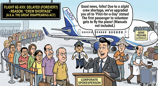 Industry insiders whisper of a cabin crew so overworked they might have mistaken the crew rest norms for a mythical holiday. IndiGo’s reputation for squeezing every last drop out of its employees seems to have backfired spectacularly. One could imagine exhausted pilots and cabin staff communally agreeing, “If we have to fly every hour, we might as well all disappear!”—and vanish they did, causing a staffing blackout that grounded planes faster than you can say “boarding pass.”