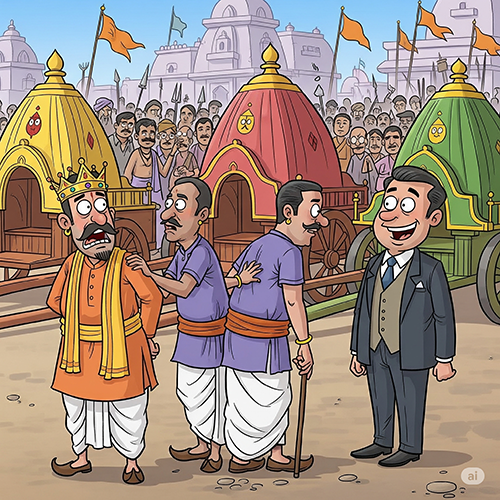 Hark, ye grief-stricken and utterly outraged citizens of Sanctimonia! A pall of profound sorrow has descended upon our hallowed land, a shadow cast not by divine displeasure, but by human folly. The grand annual outing of the Holy Triad, a day of unparalleled spiritual joy, has been tragically marred by a stampede in front of the sacred chariots. Devotees, once filled with fervent devotion, now lie still, their lives extinguished, while countless others bear the wounds of a preventable disaster.